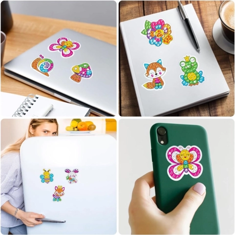 Bunte und glitzernde Aufkleber können auf verschiedenen Gegenständen wie Notizbüchern, Kühlschränken oder Handyhüllen verwendet werden.