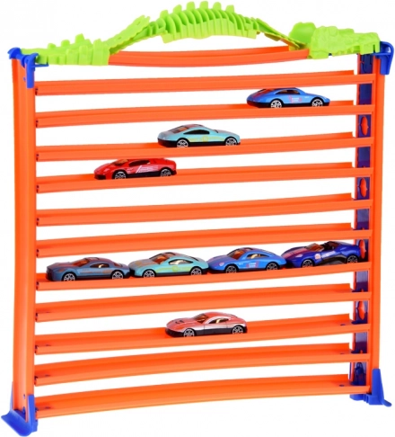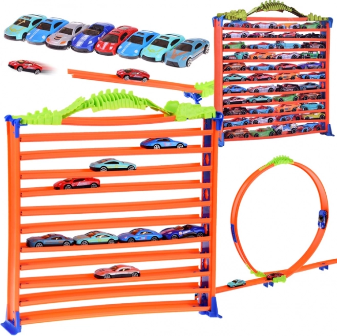 Garage und Rennstrecke für Spielzeugautos 2in1 mit 8 Teilen