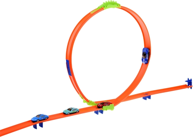 • Es kann eine Rennstrecke mit einer attraktiven Schleife erstellt werden, die die Autos dank der dynamischen Konstruktion leicht überwinden.