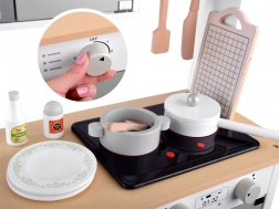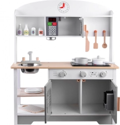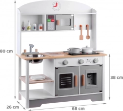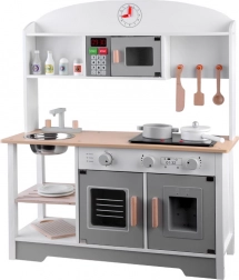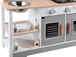 Weiße-graue interaktive Holzküche für Kinder mit Zubehör
