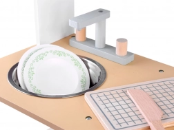 Diese Kinderküche ist ästhetisch gestaltet, bietet nicht nur großartigen Spaß, sondern trägt auch zur Entwicklung des Kindes bei. Kinder lieben es, Erwachsene zu imitieren, und diese Küche ermöglicht es ihnen, Koch-, Aufräum- und andere haushaltsbezogene Aktivitäten zu spielen.