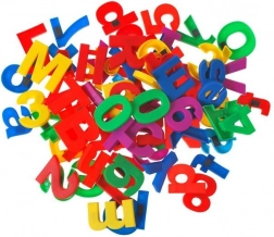 Buntes Set magnetischer Buchstaben, Zahlen und mathematischer Zeichen für Kinder. Enthält insgesamt 80 Teile für spielerisches Lernen am Kühlschrank oder an der Tafel. Unterstützt die Entwicklung des Lesens, des Rechnens und der Feinmotorik. Die Teile haften zuverlässig auf jeder Metalloberfläche und die kräftigen Farben laden zum Entdecken ein.