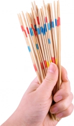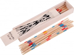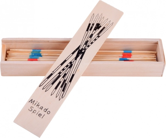 Genießen Sie zeitlosen Spielspaß mit dem Mikado aus Holz. Werfen Sie das Bündel Stäbchen auf den Tisch und heben Sie sie abwechselnd vorsichtig auf, ohne dass sich ein anderes Stäbchen bewegt. Verschiedene Farbringen geben den Punktewert an – gewonnen hat, wer die höchste Gesamtsumme erzielt.