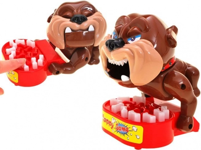 Spielregeln: Drücke die Knochen im Napf vorsichtig. Wenn du den falschen Zahn drückst, versucht der Hund, sein Futter zu schützen und beißt dich. Wenn dich der Hund beißt, scheidest du aus dem Spiel aus.