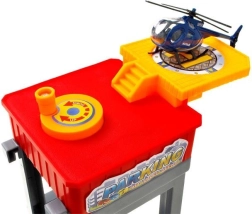 Enthalten sind 4 Metallautos und ein Metallhelikopter mit eigenem Landeplatz. Verkehrszeichen und Pylonen sorgen für realistische Verkehrsszenarien.