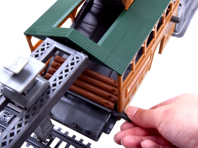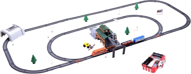 Eine großartige Nachbildung eines Güterzugs mit Waggons und Bahnhof. Dieser ferngesteuerte Zug verfügt über ein System zum Entladen der transportierten Waren und die Möglichkeit, die Strecke zu verändern, was ihn zu einem tollen Spielzeug für kinder macht, die sich für Züge interessieren. Er bietet viele Stunden Spielspaß und große Freude für kleine Lokführer.