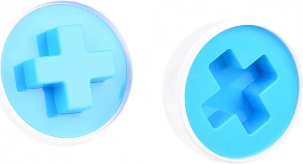 Das Hantieren mit den Hälften und das Zusammenklicken stärkt den Griff, die Bewegungsgenauigkeit und die Hand-Auge-Koordination.