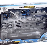 Der Star ist das U‑Boot mit Antrieb über zwei hintere Räder, das sich leicht über die Oberfläche bewegt. Der Flugzeugträger dient als Basis für 3 Kampfjets, während Versorgungsschiff und Kriegzerstörer die Flotte ergänzen. 15 beiliegende Bomben bringen Spannung und Action in jede Mission.
