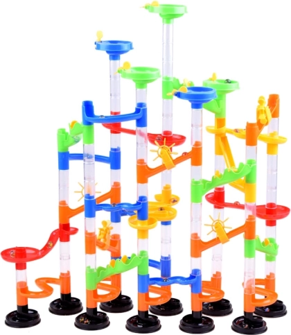 Entdecken Sie die kreative Welt der Physik mit der bunten Murmelbahn MARBLE mit 136 Teilen. Kinder bauen eigene Strecken und beobachten begeistert, wie die Murmeln nach unten sausen. Sie fördert die Kreativität, die Hand-Auge-Koordination und das logische Denken, während die variablen Teile unendliche Kombinationen und Familienspaß ermöglichen.