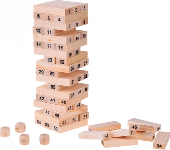 Das Holzturmspiel ist ein lustiges und spannendes Spiel für die ganze Familie. Gespielt wird mit 54 Holzblöcken, die zu einem Turm gestapelt werden. Die Spieler ziehen abwechselnd Blöcke heraus und platzieren sie obenauf, ohne den Turm zum Einsturz zu bringen. Neben der traditionellen Spielweise können Sie auch 4 Holzwürfel nutzen, um das Spielerlebnis zu verbessern.