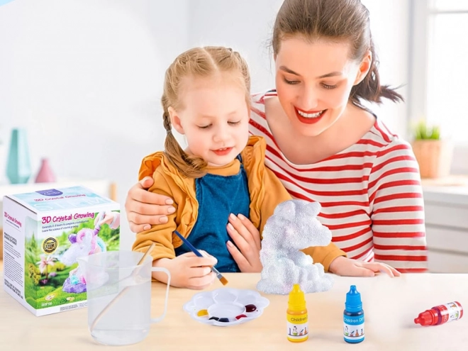 Tauchen Sie die Figur in die vorbereitete Lösung und beobachten Sie, wie Kristalle darauf zu wachsen beginnen. Nach dem Trocknen kann das Einhorn nach eigenem Ermessen bemalt werden, was endlose Möglichkeiten bietet und das kreative Denken der Kinder stärkt.