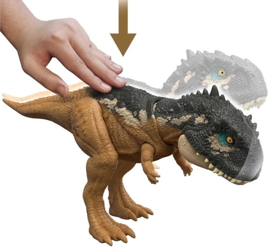 Der Dinosaurier hat bewegliche Teile, die Interaktion ermöglichen; zum Beispiel geben sein Körper, Schwanz und Kopf Geräusche von sich und bewegen sich, wenn man darauf drückt. Es ist eine großartige Ergänzung sowohl zur Ausstellung im Regal als auch zum actionreichen Spiel.