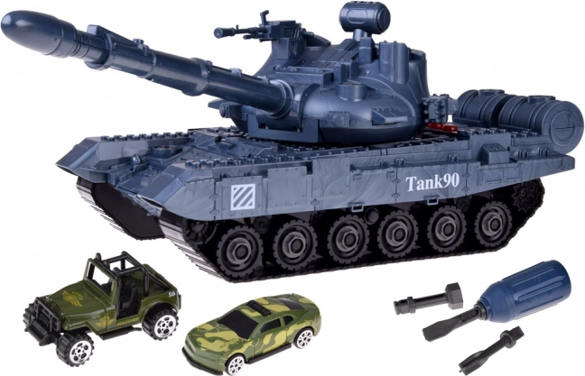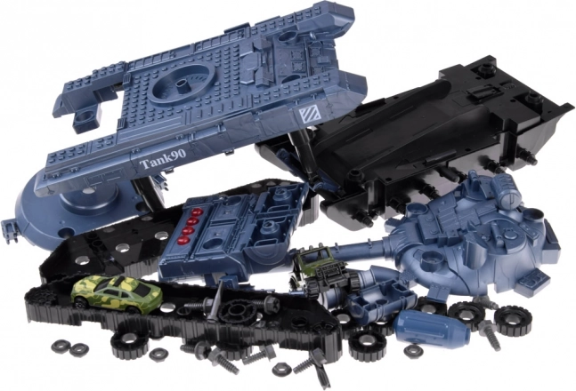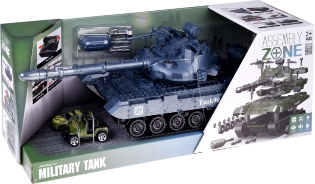 Das Set enthält Komponenten zur Montage des Tanks, einen Schraubendreher mit drei Aufsätzen und zwei Militärfahrzeuge. Eine großartige Herausforderung für kleine Mechaniker.