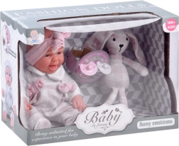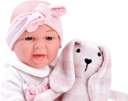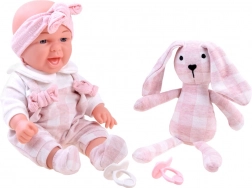 Bezaubernde Puppe – Baby im rosa-weißen Set mit weichem Plüschhäschen und zwei Schnullern erfreut jede kleine Puppenmama. Die Puppe hat realistische Züge, weiche Wechselkleidung und angenehmes Zubehör für kreatives Spielen. Ideal als Geschenk zur Förderung von Fantasie und Fürsorgefähigkeiten. Weiche Materialien, niedliches Design und sichere Details für Kinder.