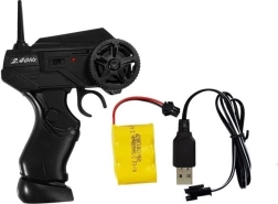Der Controller arbeitet mit einer Frequenz von 2,4 GHz, die alle Störungen beim Spielen eliminiert. Die Steuerung ist einfach mit einem Lenkrad und einem Knopf, der das Fahren nach vorne, nach hinten, links und rechts ermöglicht.