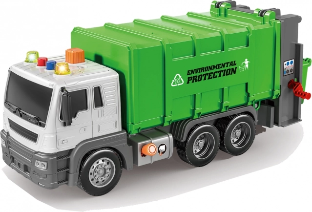 Grüner Müllwagen mit Schwungradmotor und Soundeffekten 1:16