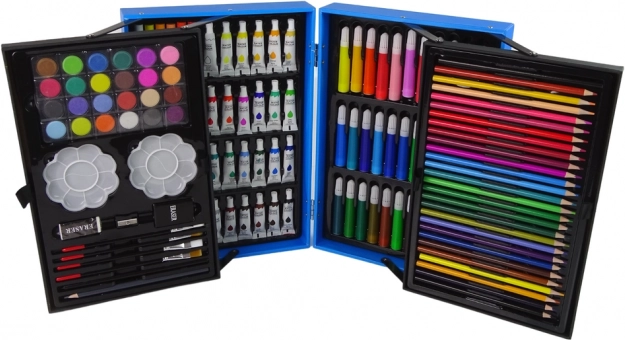 Enthält 145 Teile, darunter Buntstifte, Filzstifte, Farben und Ölkreiden – ideal zum Zeichnen, Malen und Skizzieren.