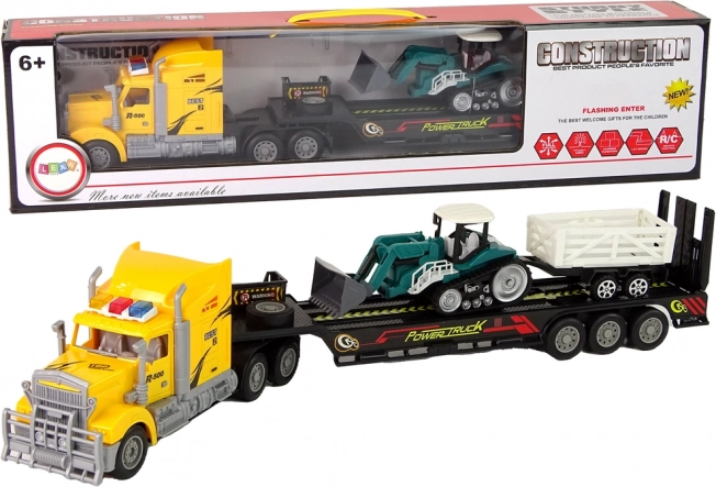 Der Tieflader-Anhänger und der abnehmbare Zusatzanhänger ermöglichen den sicheren Transport von Arbeitsmaschinen und Ladung. Perfekt, um realen Baustellenverkehr zu simulieren.