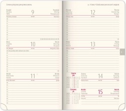 Der elegante Taschenkalender Diamante 2025 in Rot bietet eine praktische Wochenübersicht mit einem tschechisch-slowakischen Kalendarium und zusätzlichen Sprachen. Ideal für die tägliche Planung unterwegs – kompaktes Format, hochwertige Verarbeitung und nützliche Übersichten. Monats- und Jahresplaner, Karten von Tschechien und der Slowakei, Textillesezeichen und perforierte Ecken erleichtern Orientierung und Organisation.