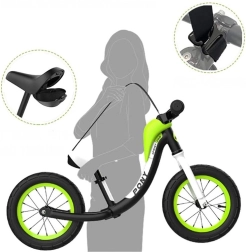 Die verstellbare Sattelhöhe (ca. 31–38 cm) wächst mit dem Kind, und ergonomisch geformte Lenker mit rutschfesten Griffen geben zusätzliche Sicherheit. Ein schutzender Gummipolster am Rahmen erhöht die Sicherheit. Eltern schätzen den Tragegurt und das clevere Staufach im Sattel, das den Gurt und kleine Gegenstände aufnimmt.