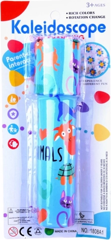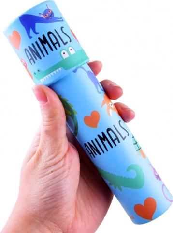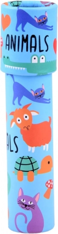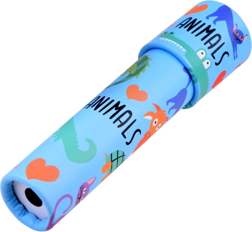 Fröhliche Tierillustrationen und kräftige Farben machen das Kaleidoskop zu einem attraktiven Spielzeug für Kinder.