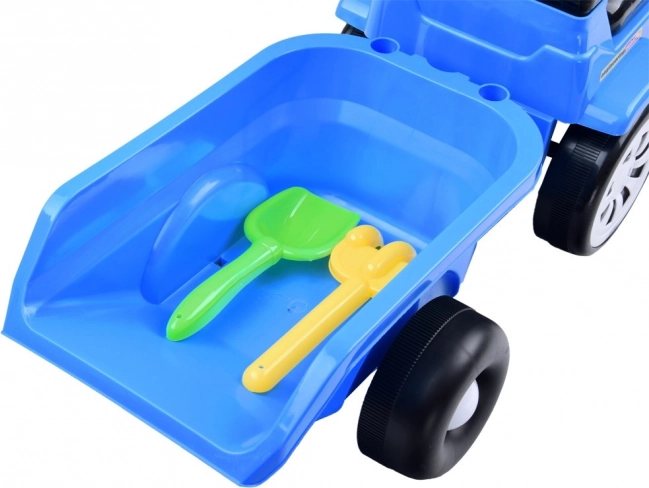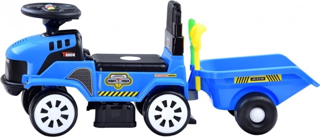 Kinder-Rutschfahrzeug in Traktorform mit abnehmbarem Anhänger sorgt für Spaß zu Hause und im Garten. Bietet lichteffekte, fröhliche Melodien am Lenkrad, Stauraum unter dem Sitz und ergonomisches Design für eine sichere Fahrt. Inklusive Spielzeug – Schaufel und Harke sowie Möglichkeit zum Ankoppeln des Anhängers.