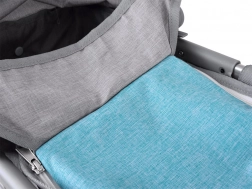 Verstellbare, weich gepolsterte Schiebestange, Sicherheitsgurte, klappbares Verdeck und ein geräumiger Korb werden durch eine abnehmbare Zubehörtasche ergänzt.