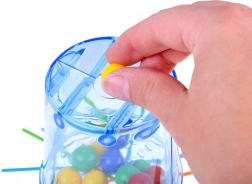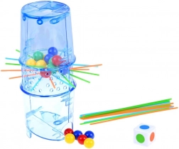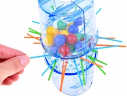 Trick Stick ist das ideale Spiel für diejenigen, die Konzentration und Strategie lieben. Die Spieler platzieren abwechselnd bunte Stäbchen in den Turm und schütten dann bunte Kugeln hinein. Der Gewinner ist derjenige, der bleibt, ohne dass Kugeln gefallen sind!