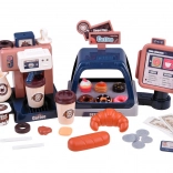 Präsentieren Sie Kuchenstücke, Baguette und Hörnchen, bereiten Sie Kaffee mit Bechern und Deckeln zu. Enthalten sind Münzen, Scheine und eine Zahlungskarte für realistische Gästebedienung.