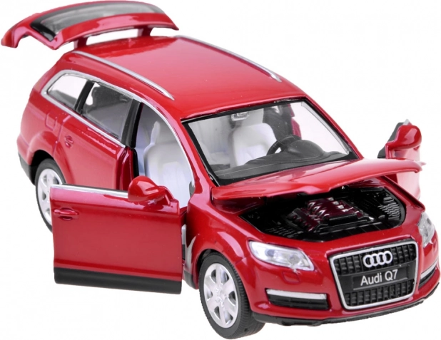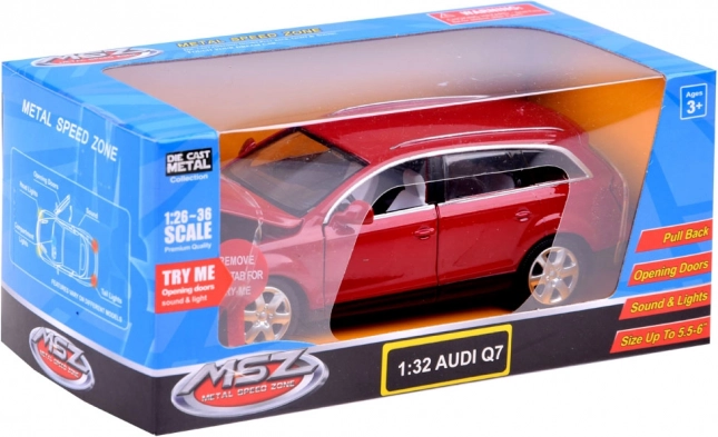 Spielzeugauto SUV Audi Q7 ist ein Auto, das für das Fahren in der Stadt bestimmt ist. Das Auto wurde sehr sorgfältig und ästhetisch mit Augenmerk auf kleinste Details gefertigt, was sicher jeden kleinen Fahrer erfreuen wird. Das Auto verfügt über Sound- und Lichteffekte, zu öffnende Türen, Kofferraum und Motorhaube. Das Auto fährt durch Rückwärtsbewegung des Spielzeugs auf einer glatten Oberfläche mithilfe des Friction-Power-Mechanismus.