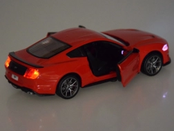 Das detailreich gestaltete Modell des Sportwagens FORD Mustang GT bringt realistische Proportionen und hochwertige Materialien. Die Karosserie besteht aus Metall, die Räder sind aus Gummi und das Fahrwerk aus robustem Kunststoff – ideal sowohl für die Sammlung als auch für den täglichen Spielspaß.