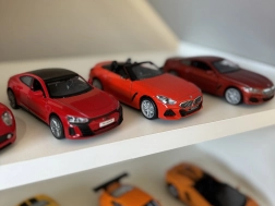 Die zu öffnenden Türen beleben Spiel und Präsentation des Modells. Beim Öffnen ertönen Hupe und Alarm; beim Herunterdrücken des Modells auf die Unterlage hören Sie Motorstart und Motorlauf. Die Effekte werden durch die Front- und Rückleuchten ergänzt. Der Friktions- (Rückzug-) Antrieb sorgt dafür, dass das Auto nach dem Aufziehen auf glatter Oberfläche von selbst nach vorn saust.