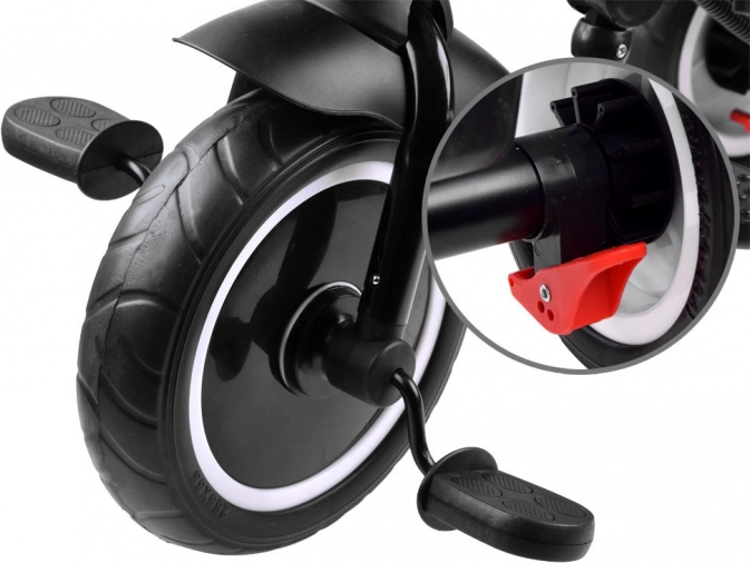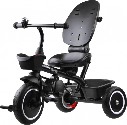 Eltern schätzen die höhenverstellbare Schiebestange mit direkter Lenkverbindung, die zwei Hinterradbremsen sowie praktische Staumöglichkeiten: vorderer Korb, großer hinterer Korb und Tasche für Kleinigkeiten. Klappbare Fußstützen für kleinere Kinder und Pedale am Vorderrad für größere stellen sicher, dass das Dreirad in jeder Wachstumsphase perfekt passt.