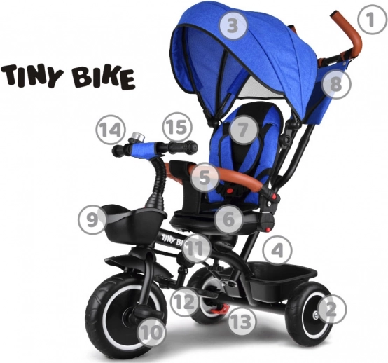 Kinder-Dreirad 3-in-1 mit drehbarem Sitz und Sonnendach TINY BIKE – Blau