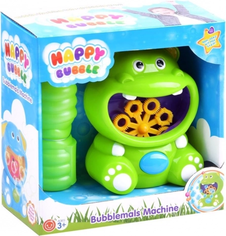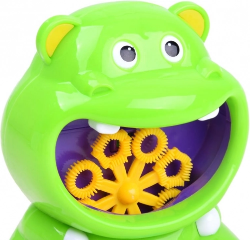 • Komplett-Set: Nilpferd-Automat + Flasche mit Seifenblasenlösung.