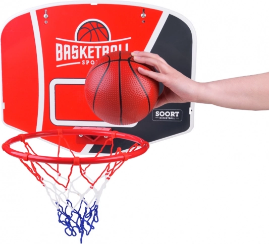 Komplettes Basketball-Set für Kinder und Anfänger mit einer robusten Platte 46 × 36 cm, Metallring mit einem Innendurchmesser von ca. 30 cm, farbigem Netz, Ball und Pumpe. Einfache Wandmontage drinnen und draußen, ideal für Präzisionstraining und aktive Unterhaltung. Robuste Ausführung, komplettes Zubehör und universeller Einsatz garantieren viel Sportspaß.
