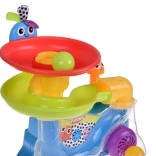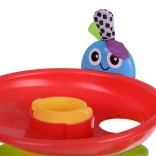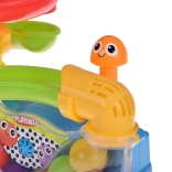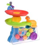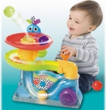 Dieses ikonische Spielzeug von PLAYSKOOL verbindet die Faszination rollender Bälle mit einfacher Bedienung. Kinder werfen die Bälle in den Trichter, beobachten ihr Wirbeln und ihr Wiederauftauchen oben, von wo aus sie die Spiralbahn hinabkullern. Rhythmische Bewegungen und leuchtende Farben fesseln die Aufmerksamkeit und fördern die Konzentration.