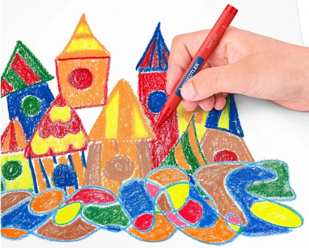 Staedtler Noris Jumbo Wachsmalstifte bieten 12 lebendige Farben, die die Kreativität und Vorstellungskraft Ihres Kindes unterstützen. Diese Stifte sind geruchsfrei und ungiftig, was eine sichere Verwendung garantiert. Mit ihrem ergonomischen Design sind sie ideal für kleine Hände und bieten einen einfachen Griff. Die hochwertige Wachstextur gewährleistet ein flüssiges Zeichnen.