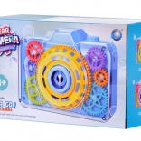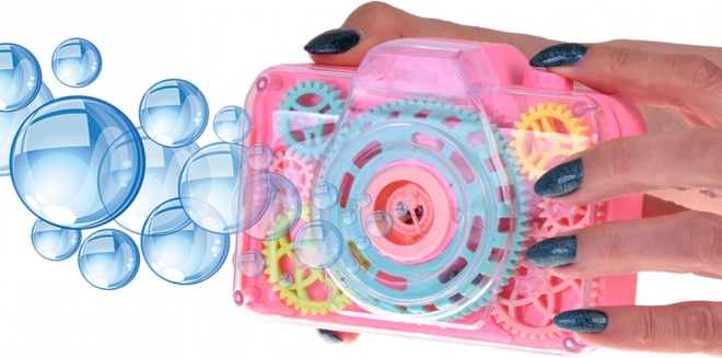 Diese verspielte Seifenblasen-Kamera bietet Kindern den magischen Effekt von Blasen kombiniert mit einem realistischen Fotoerlebnis. Beim Drücken des Auslösers starten Lichteffekte, das Verschlussgeräusch und aus der Öffnung werden Seifenblasen ausgeblasen, die eine bezaubernde Atmosphäre beim Spielen drinnen und draußen schaffen.
