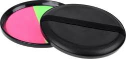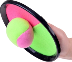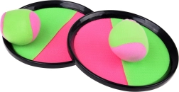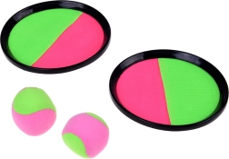 Leichtes und unterhaltsames Wurf- und Fang-Set mit Klettoberfläche für aktive Outdoor-Unterhaltung für Kinder und Erwachsene. Zwei Schläger mit griffigem Handriemen und zwei weiche Bälle in Neonfarben sorgen für leichtes Fangen, fördern die Augen-Hand-Koordination und schnelle Reaktionen – ideal für Garten, Strand und Park.