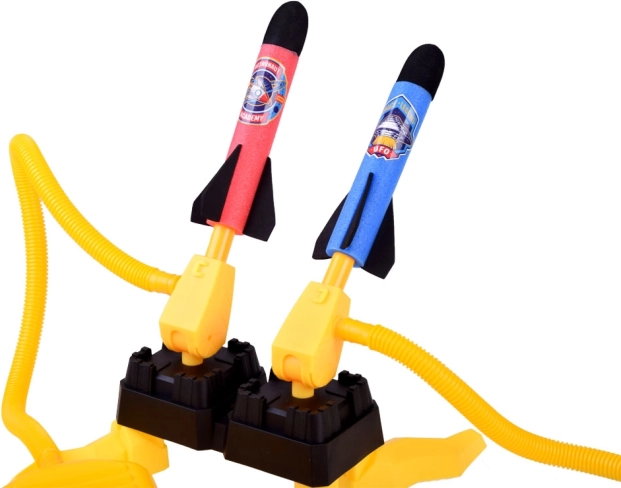 Das Set beinhaltet: eine Abschussbasis, 4 Katapultarme, 2 Rohre, 2 Zylinder, 2 Luftkammern, 6 Schaumstoffraketen und dekorative Aufkleber. Leicht zusammen- und auseinanderzubauen für bequeme Anwendung.