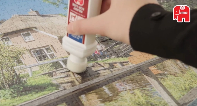 Bewahren Sie Ihre Lieblingspuzzles in perfektem Zustand auf. Der flüssige Kleber JUMBO Puzzle Fixative wird direkt auf die Vorderseite des zusammengesetzten Bildes aufgetragen und verbindet alle Teile zu einer stabilen Einheit. Dank des integrierten Schwamms ist die Anwendung sauber, schnell und gleichmäßig.