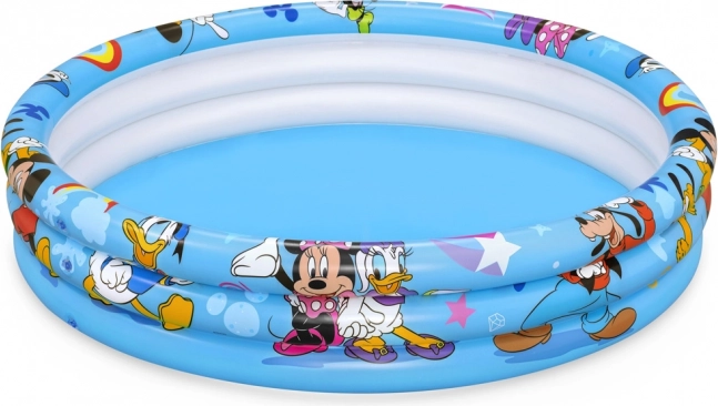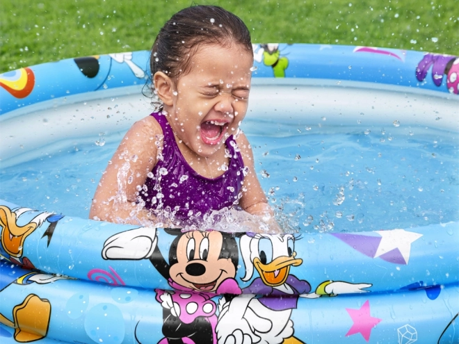 Der leichte, tragbare aufblasbare Pool von Bestway mit lizenzierter Grafik MICKEY & FRIENDS ist perfekt für kindliche Wasserspiele im Garten. Drei separate Ringe halten die Form und bewahren die Luft besser, während weiches, getestetes Vinyl Komfort und Widerstandsfähigkeit im Alltag sichert.