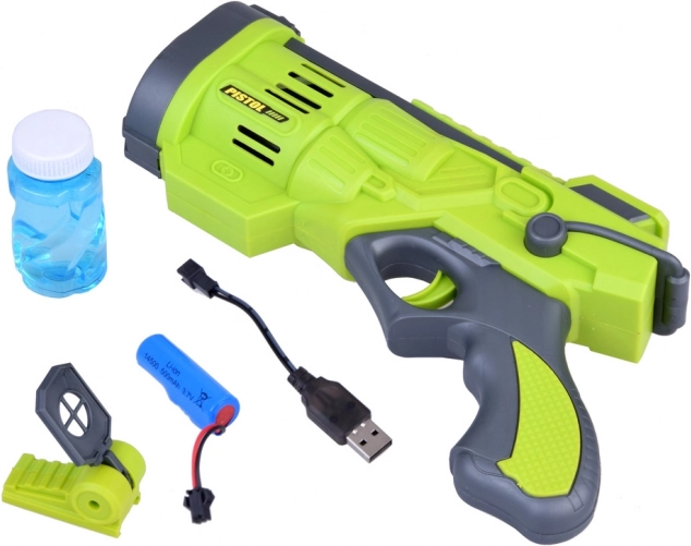 Im Lieferumfang sind ein aufladbarer 500-mAh-Akku (3,7 V) und ein USB-Kabel enthalten – kein Nachkaufen von Batterien nötig. Der abnehmbare „Zielaufsatz“ verleiht dem Spiel Extra-Spaß und hilft, den Blasenstrahl dorthin zu lenken, wo Sie möchten – ideal für Kinderpartys, Picknicks und Familienfeste.