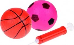 Zwei aufblasbare Bälle mit Pumpe sind bereit zum Werfen und für einfache Ballspiele. Der Federball trainiert Präzision und Reaktionsfähigkeit.