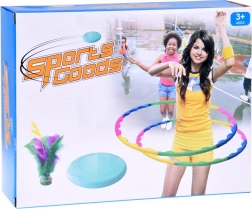Hula-Hoop, Frisbee (Scheibe), Springseil, 2 aufblasbare Bälle, Federball