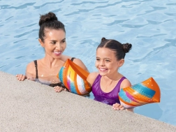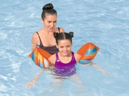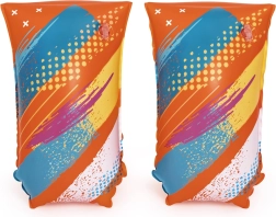 Bunte aufblasbare BESTWAY-Schwimmflügel L/XL mit Schmetterlingsmotiv für Kinder von 5 bis 12 Jahren bieten eine sichere Unterstützung beim Schwimmenlernen. Dank 2 unabhängiger Luftkammern und robustem TPU-Material sind sie leicht und bequem und durch die leuchtend orange Farbe gut sichtbar.