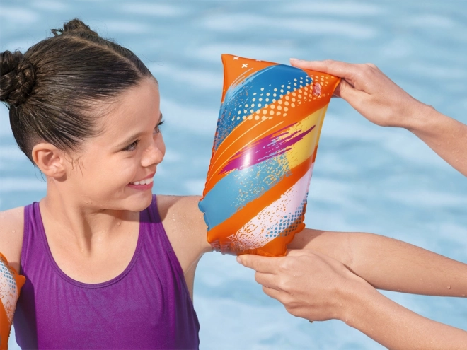 Die auffällige orange Farbe und sommerliche Schmetterlingsgrafik sorgen für hervorragende Sichtbarkeit im Pool, am See und am Meer. Die Schwimmflügel sind ideal für Kinder im Alter von 5–12 Jahren mit einem empfohlenen Gewicht von 24–60 kg.
