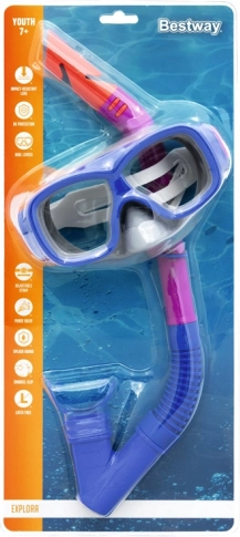 Das Bestway Hydro Swim Schnorchel-Set 7+ für Kinder kombiniert eine bequeme Maske und einen Schnorchel für unbeschwertes Entdecken der Unterwasserwelt. Es bietet UV-Schutz durch Polycarbonatgläser, ein weiches Silikonmundstück sowie ein verstellbares Band für sicheres und komfortables Tragen.