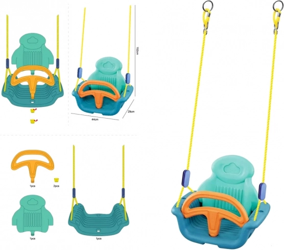 Diese modulare Schaukel ist ideal für kleine und große Kinder. Dank der zweistufigen Einstellung des Sicherheitsbügels kann die Schaukel mit dem Kind mitwachsen und bietet optimalen Halt und Sicherheit. Das maximale Benutzergewicht beträgt 50 kg, was die Schaukel für die meisten Kinder geeignet macht. Maße der Schaukel: 44cm x 29cm x 152cm. Diese bunte und funktionale Schaukel bringt nicht nur Freude am Spielen, sondern hilft dem Kind auch, motorische Fähigkeiten und Gleichgewicht zu entwickeln. Es ist eine großartige Lösung für Eltern, die ein sicheres und attraktives Spielzeug für ihre Kinder suchen, sowohl für den Innen- als auch den Außenbereich geeignet.
